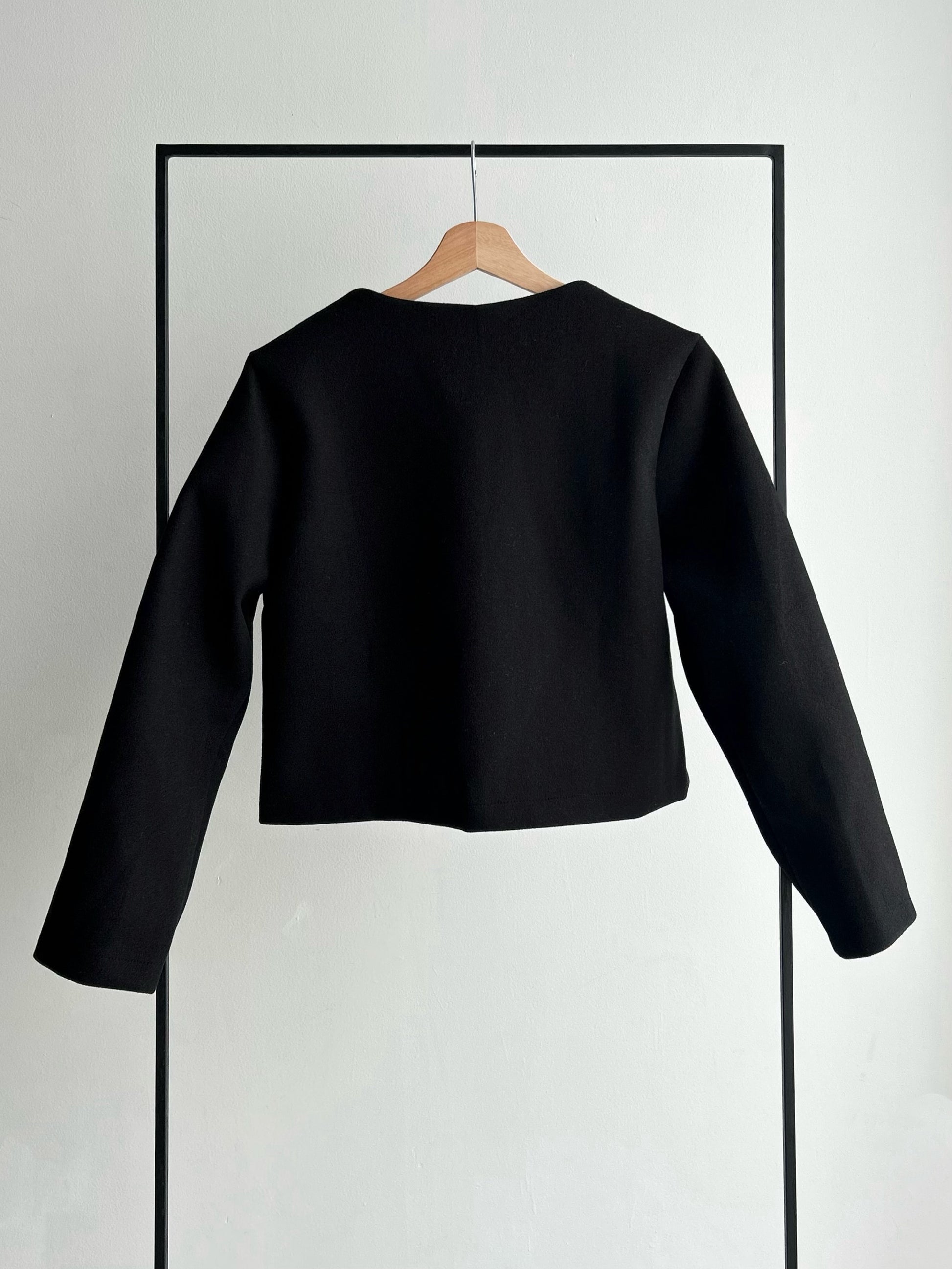 コンパクトな丈感でパンツにもスカートにも合わせやすく、デイリーから特別なシーンまで活躍する一枚です。
