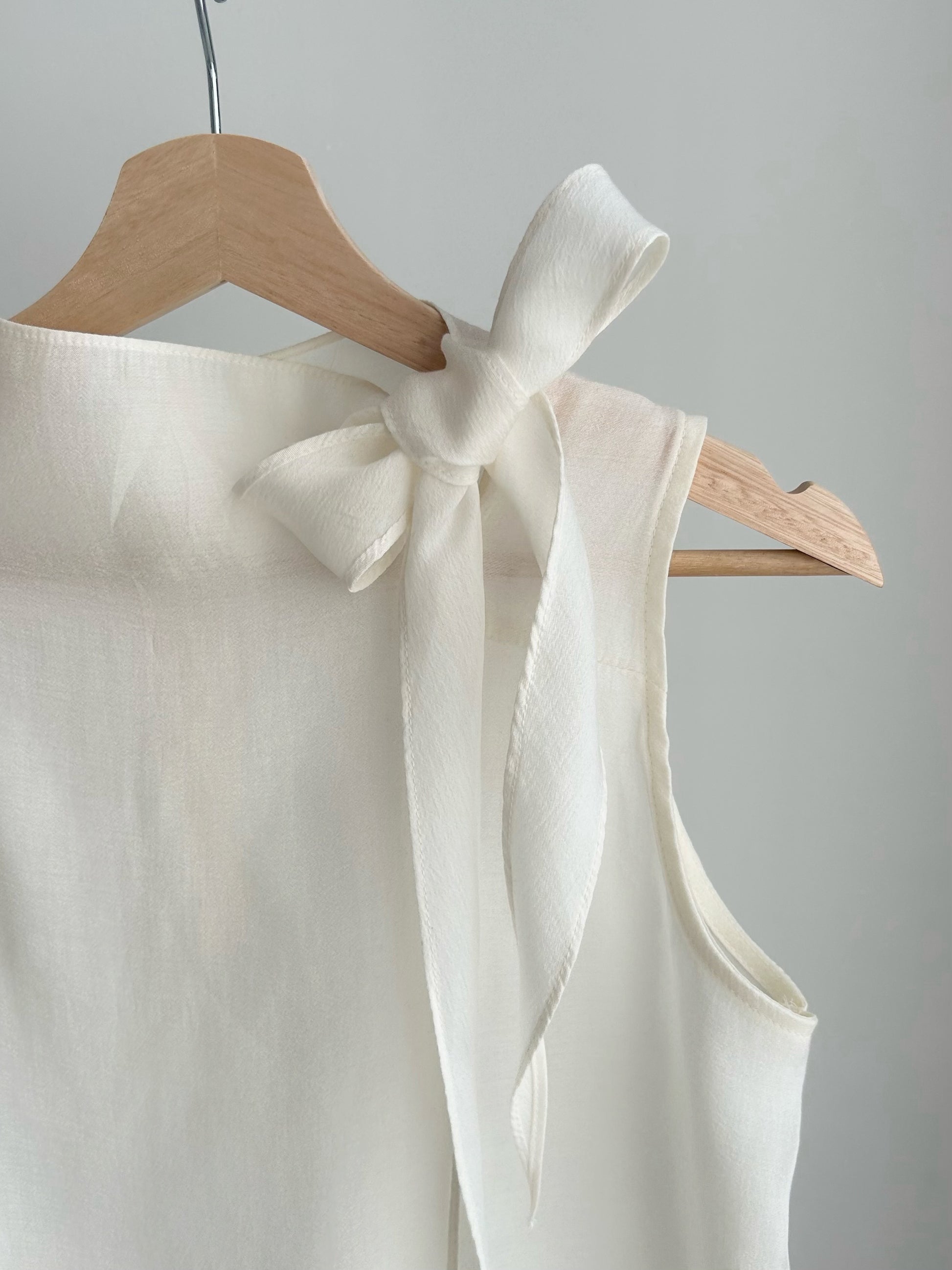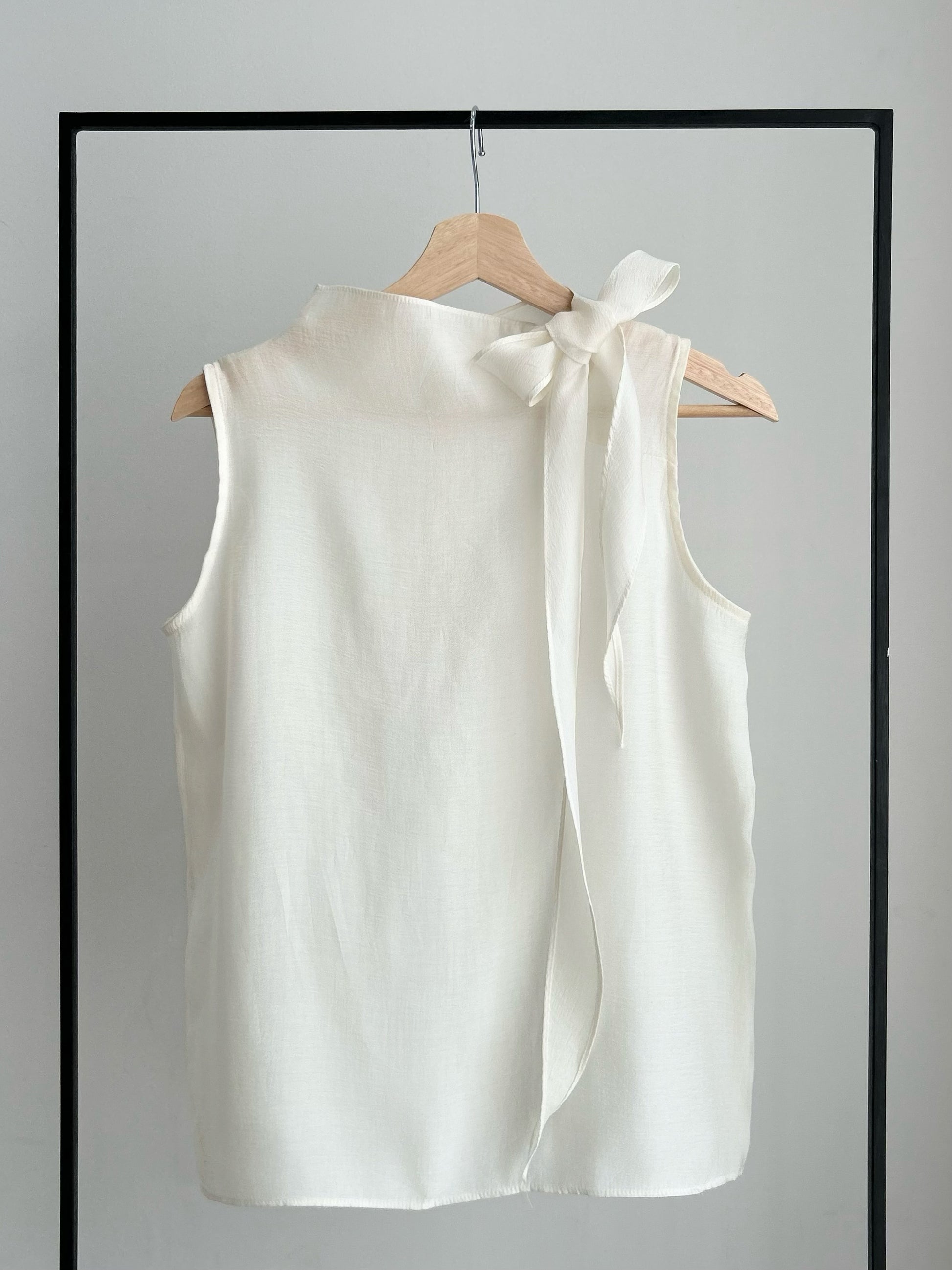 シアーハイネックバックボタンリボンブラウス/アイボリー