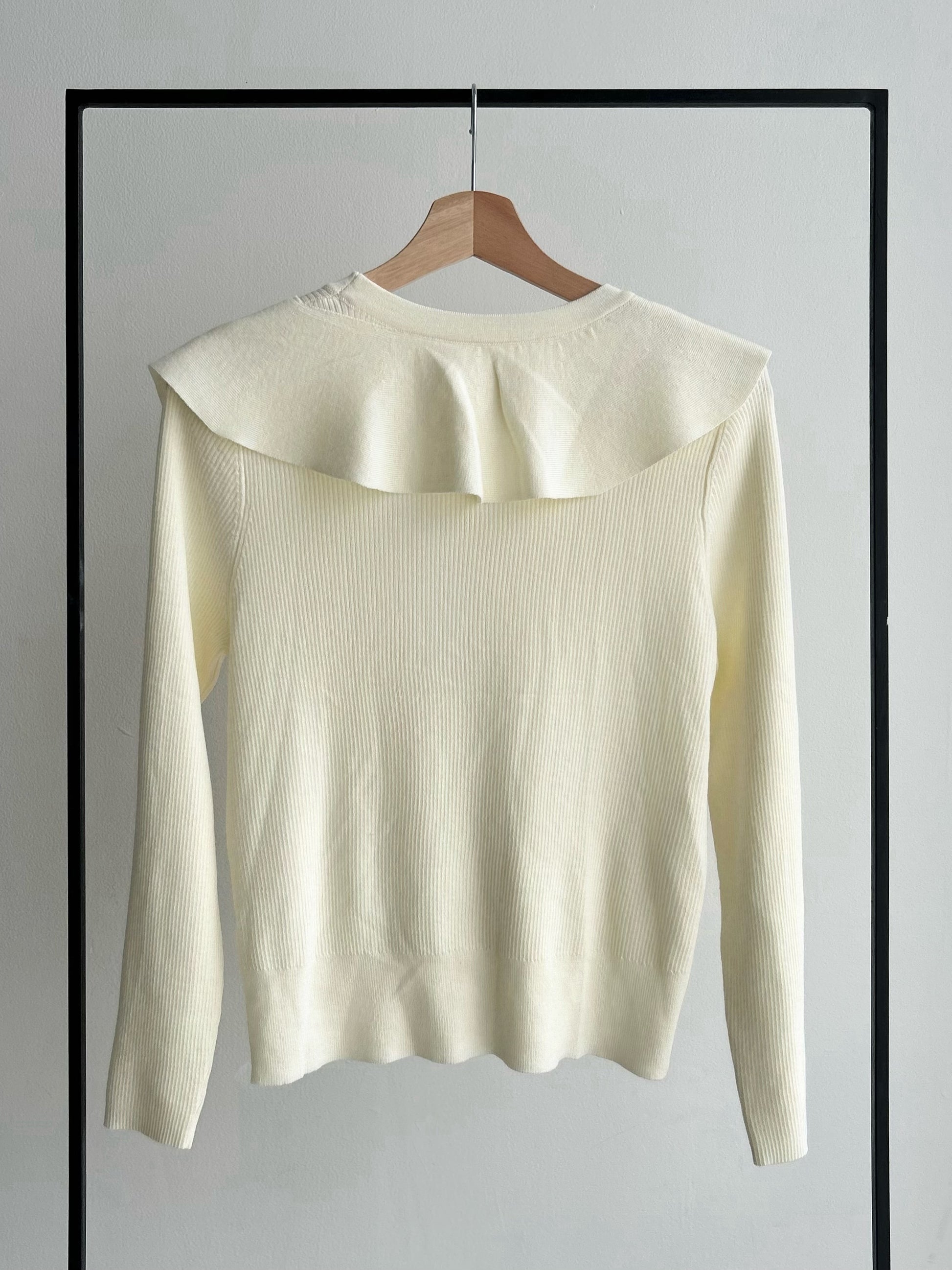 【再販】ゴールドボタンフリルデザインカーディガン/アイボリー