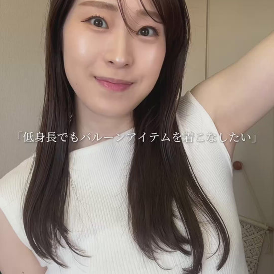 バルーンシルエットながらも膨らみすぎず、すっきりとしたシルエットで大人の上品さを演出します。