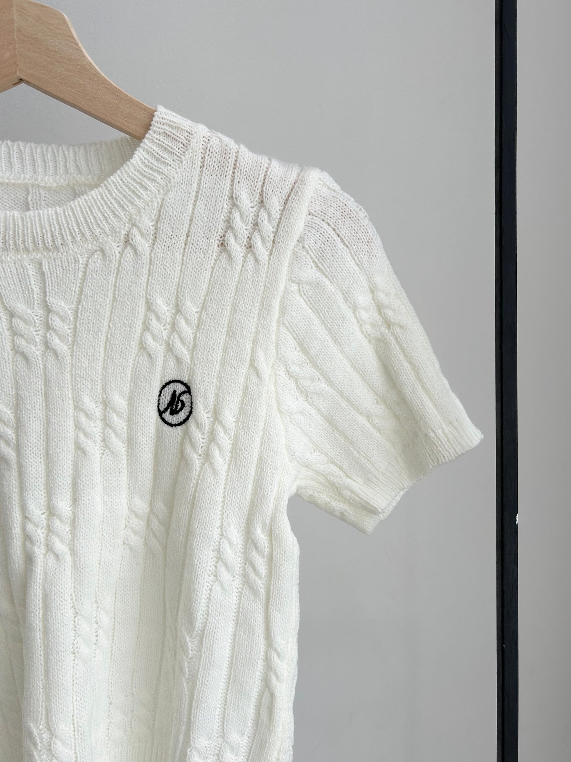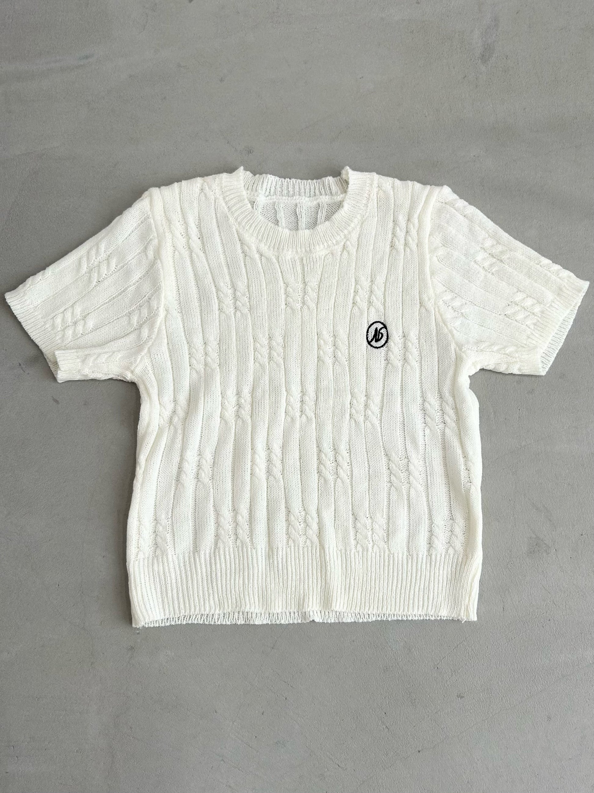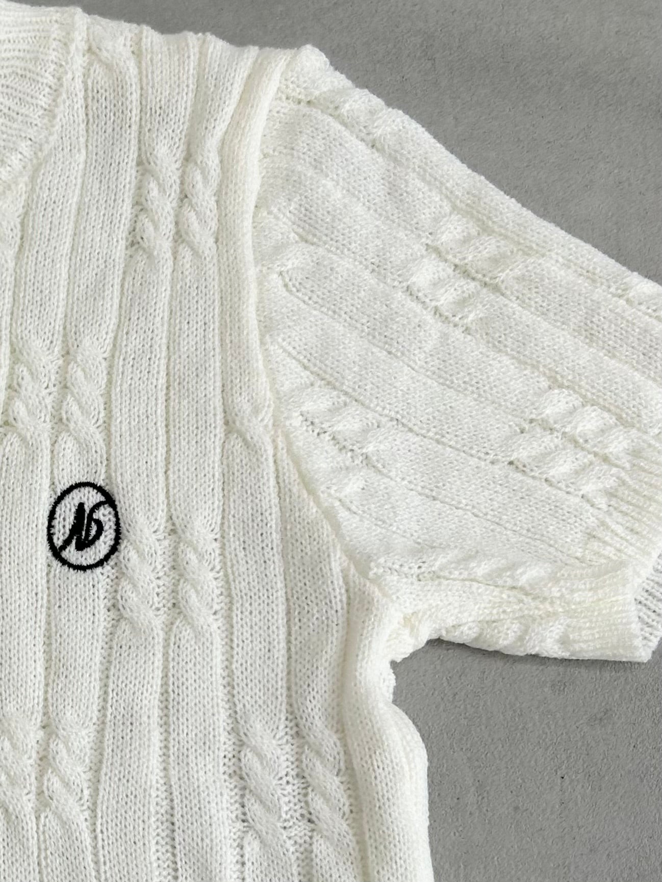 ケーブル編みワンポイントサマーニット/アイボリー